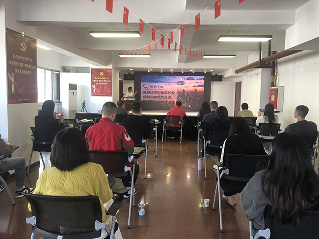 國鵠飛送(重慶)科技有限公司創始人鄧永兵作《低空經濟對物流行業效能與體驗的升級》專題授課。鄧永兵從現代物流行業概況、低空經濟對物流行業效能和體驗的升級、無人機運用于全場景物流運輸服務等方面進行深入剖析和精彩講授,講座主題鮮明、內容豐富,公司上下全面加強低空經濟對物流行業影響的認識同時,對公司項目建設與科技創新相融合具有很好的指導作用。